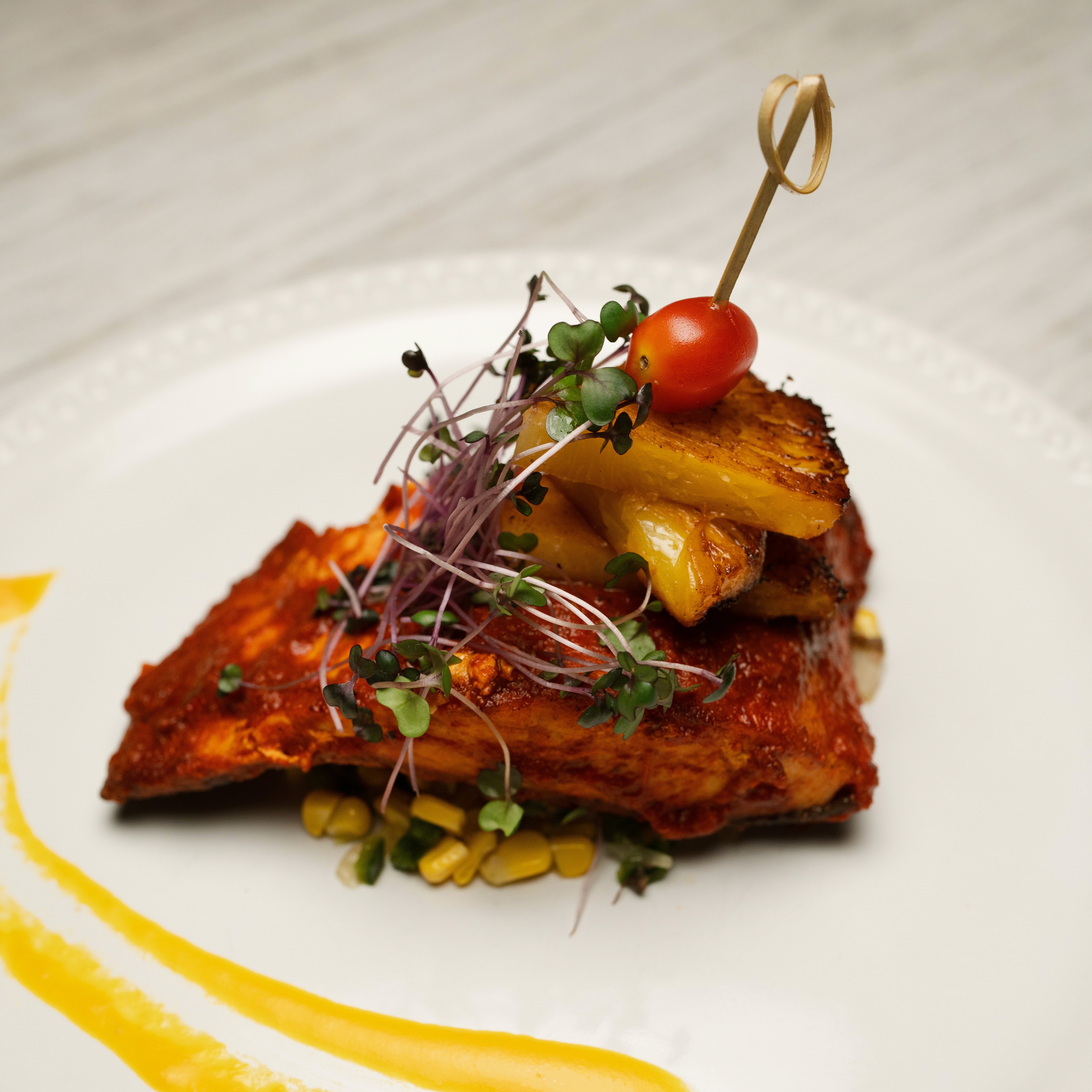 Pan de masa madre crujiente con aguacate cremoso, salmón curado en casa, limón amarillo y brotes frescos para un balance elegante.
